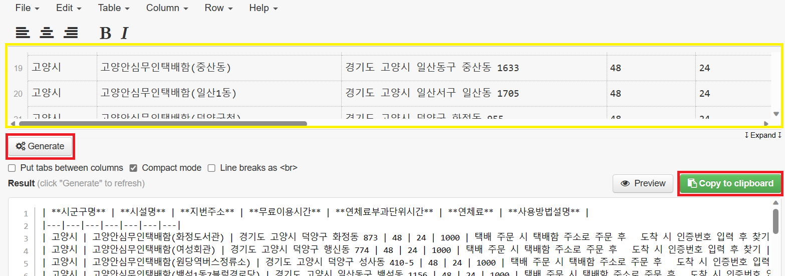 Tables Generator에서 표를 html 또는 마크다운 형태로 변환할 수 있습니다.