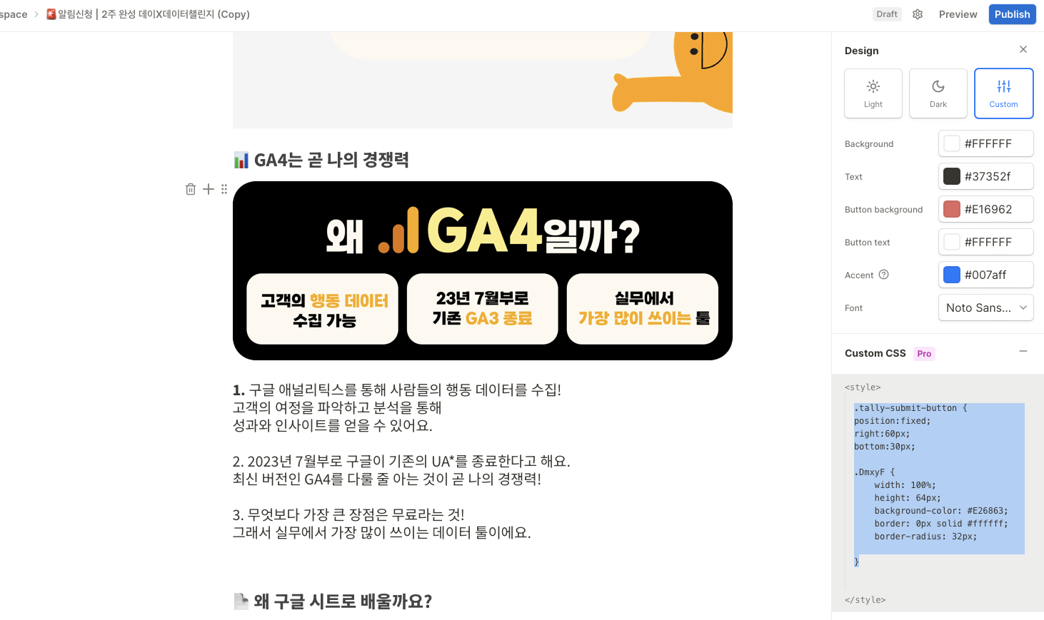 1. 랜딩 페이지인 Tally 알림신청 상세페이지 버튼 수정하기 위해 Design 클릭