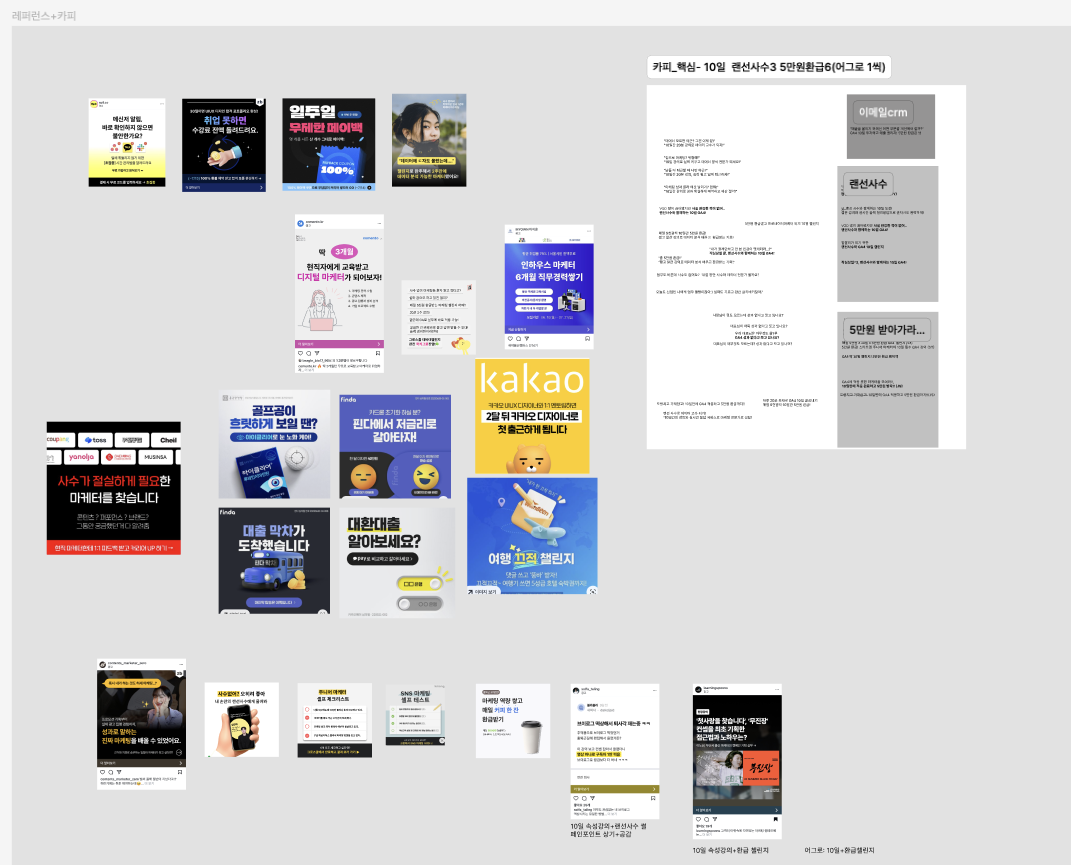 타겟 대상으로 소구점인 10일, 랜선사수/5만원환급을 강조하는 광고 카피문구와 레퍼런스 이미지를 수집해 선별 후 각자 3가지씩 1:1 광고 이미지 소재 제작