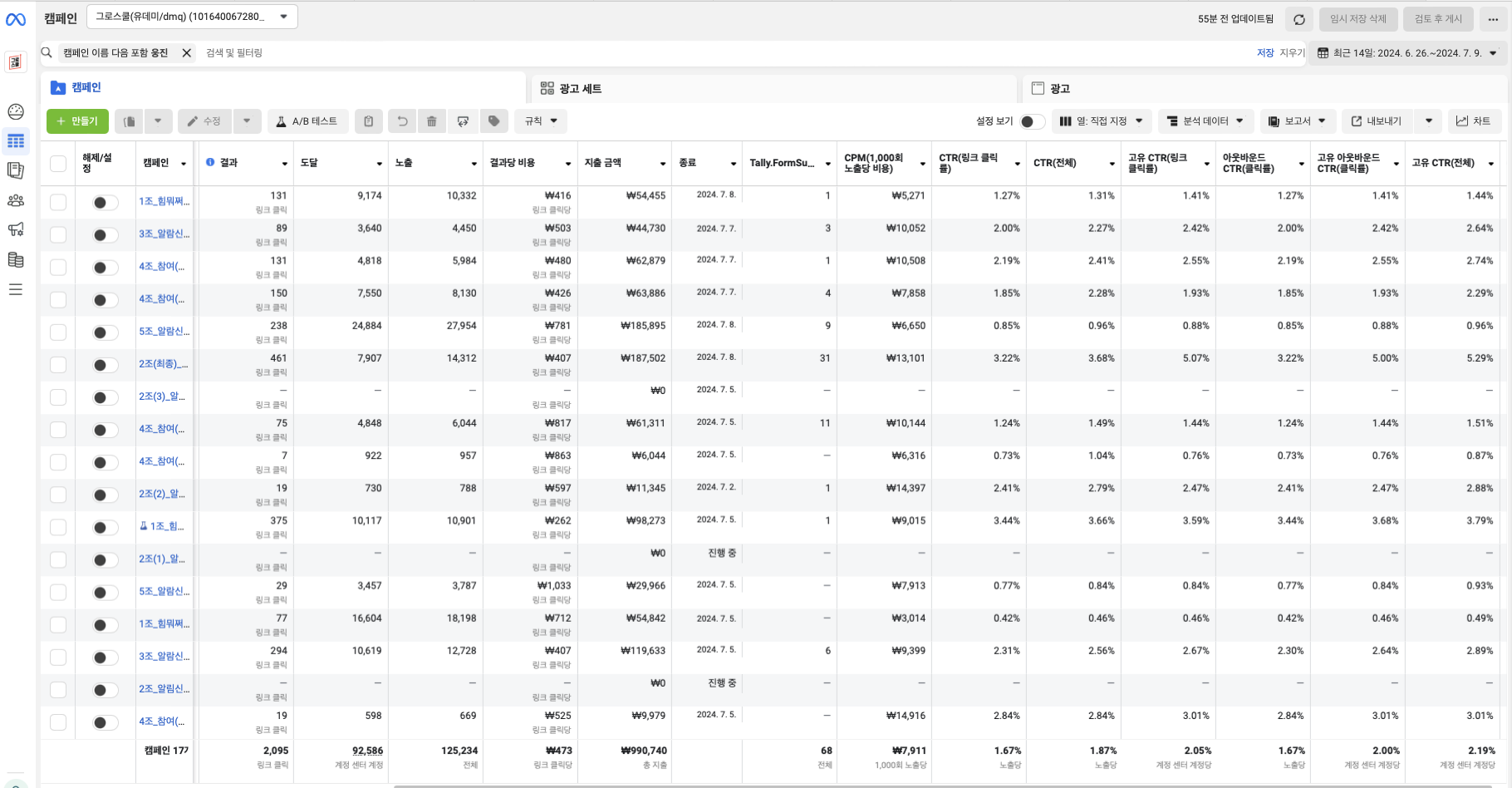 META 광고 세트 1개 ABO: 첫날 4만원 * 변경일 4만원 + 12일*2만원 = 320,000원