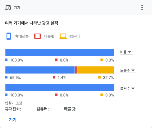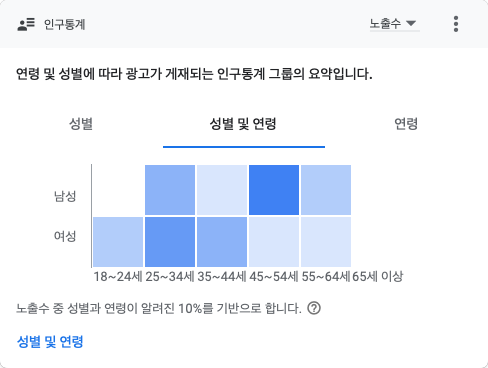 타겟을 구글이 최적화하도록 다른 설정을 하지 않았는데, 그 결과는 다양한 연령대에 광고가 게재되었다.